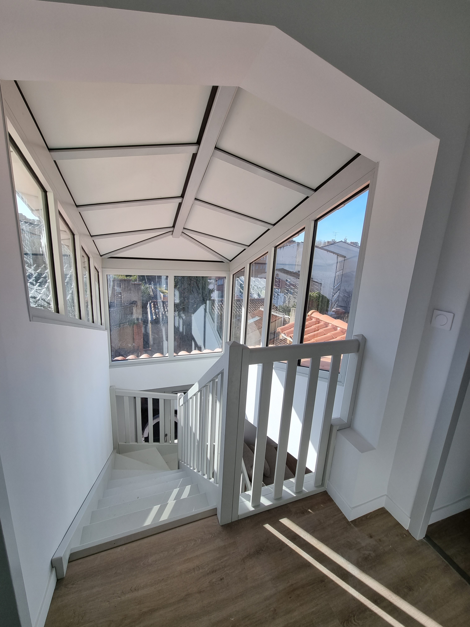 Toulouse, situé dans le quartier de Palais de Justice, au troisième et dernier étage d'un immeuble rénové, bel appartement T3 duplex meublé de 76 m² comprenant une entrée avec buanderie et WC, un spacieux séjour lumineux, une cuisine ouverte équipée avec un espace salle à manger et une grande terrasse de 20 m² orientée ouest.